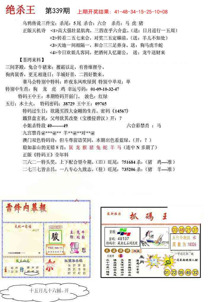 337期:射手座神算【八肖16码】开:鸡09中奖!
